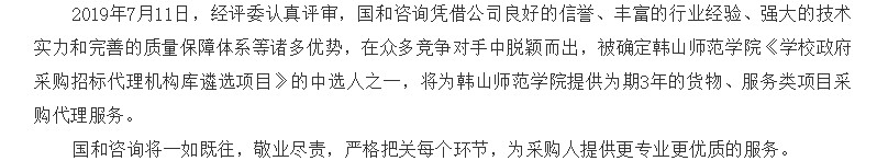 我公司成功中選“韓山師范學(xué)院學(xué)校政府采購招標(biāo)代理機(jī)構(gòu)庫遴選項目”
