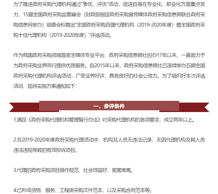 全國政府采購百強(qiáng)代理機(jī)構(gòu)(2019-2020年度)暨全國政府采購十佳代理機(jī)構(gòu)(2019-2020年度)評選活動(dòng)啟動(dòng)